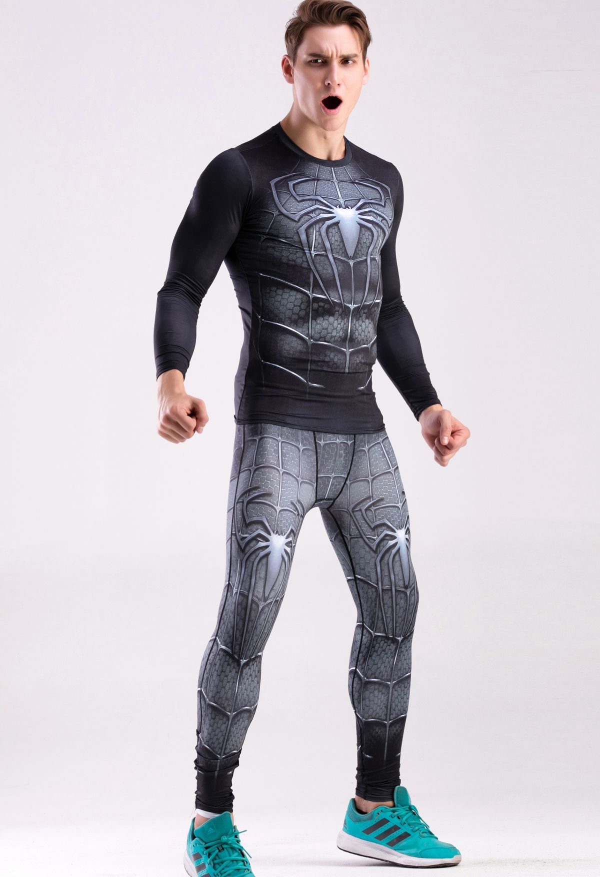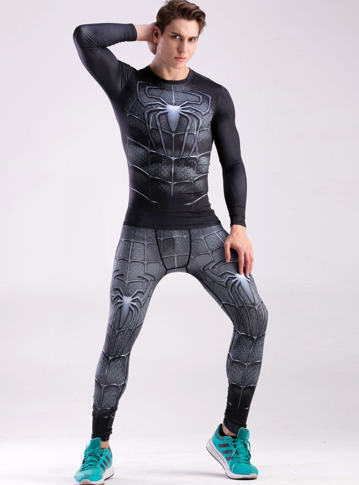 Men's Long Sleeve Shirt 3D Tech Printed Compression Sports T-Shirt Quick Dry Tight Sports Top Cool Dry Shirt Sporty Top Four Seasons Running Training Sweatshirt (043 )